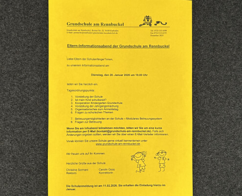 Infoabend für die Eltern der neuen Schulanfänger*innen