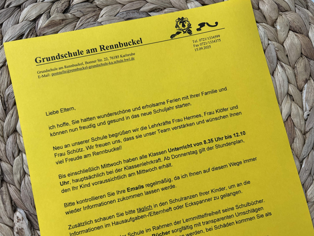 Zusätzlich schauen Sie bitte täglich in den Schulranzen Ihrer Kinder, um an die Informationen im Hausaufgaben-/Elternheft oder Eckspanner zu gelangen.