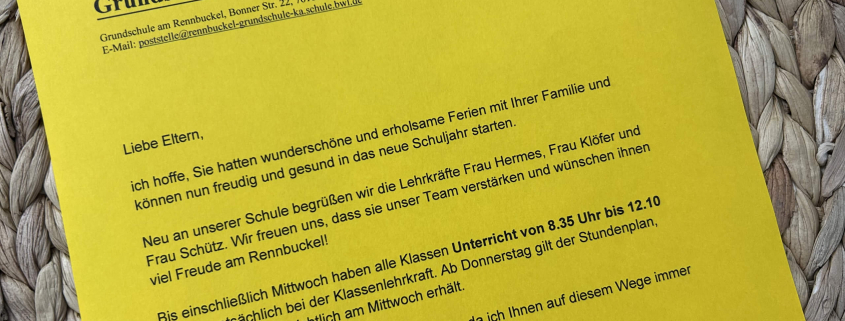 Elternbrief zum Schuljahresbeginn